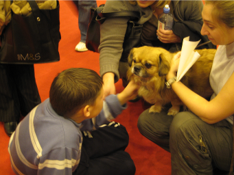 Every year members of the Tibetan Spaniel Association staff a stand at the very successful DISCOVER DOGS area at Crufts. The photos below feature the Tibetan Spaniels (also nicknamed 'Tibbies') interacting with some of the many visitors to our stand.